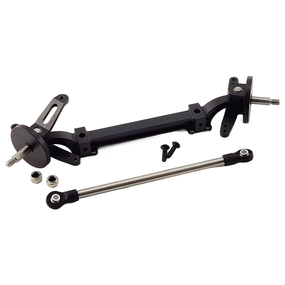 Aluminum Front Axle Set with Steering Linkage Rod for Tamiya 1/14 Tractor Trucks: Black