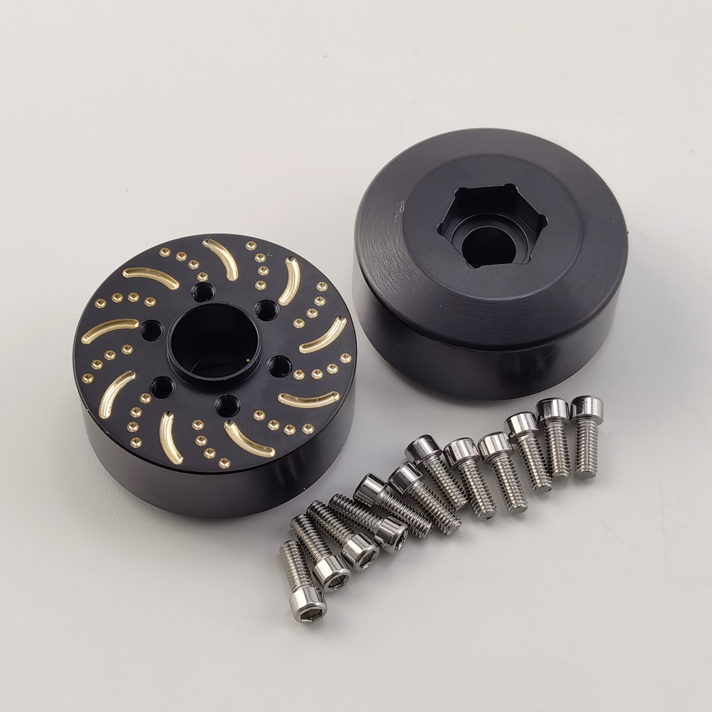 Black Brass Wheel Weight Hub 12mm for 1.9/2.2 Crawler Wheel (VP Wheels) 85g/pc 36x36x14mm Hex 12mm Hub M3*12 Scale Screws 2pcs/set