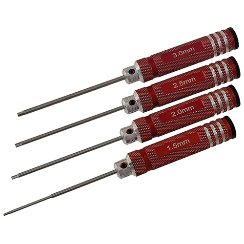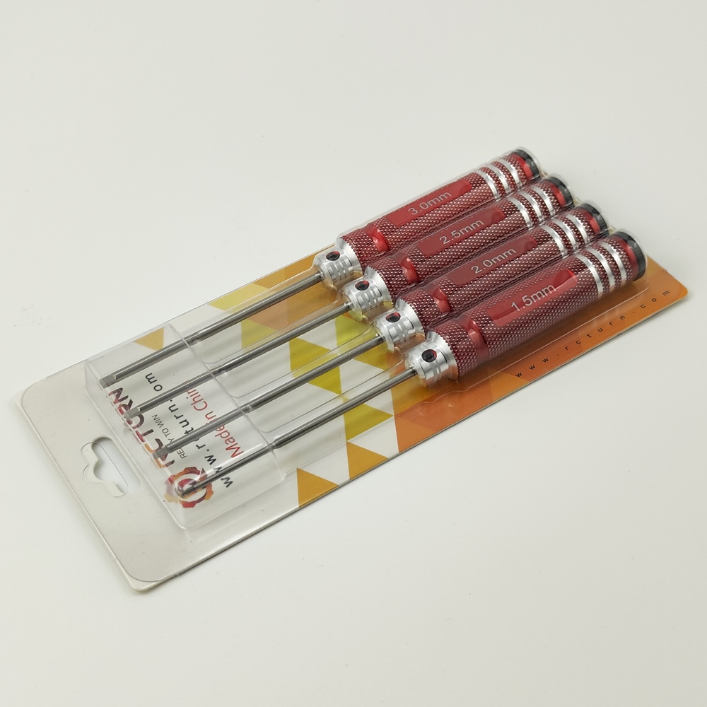 White Steel Allen Wrench Set - Red 4pcs RTT11025A Hex1.5 x 180mm RTT11025B Hex2.0 x 180mm RTT11025C Hex2.5 x 180mm RTT11025D Hex3.0 x 180mm White Steel Tips 4pcs/set