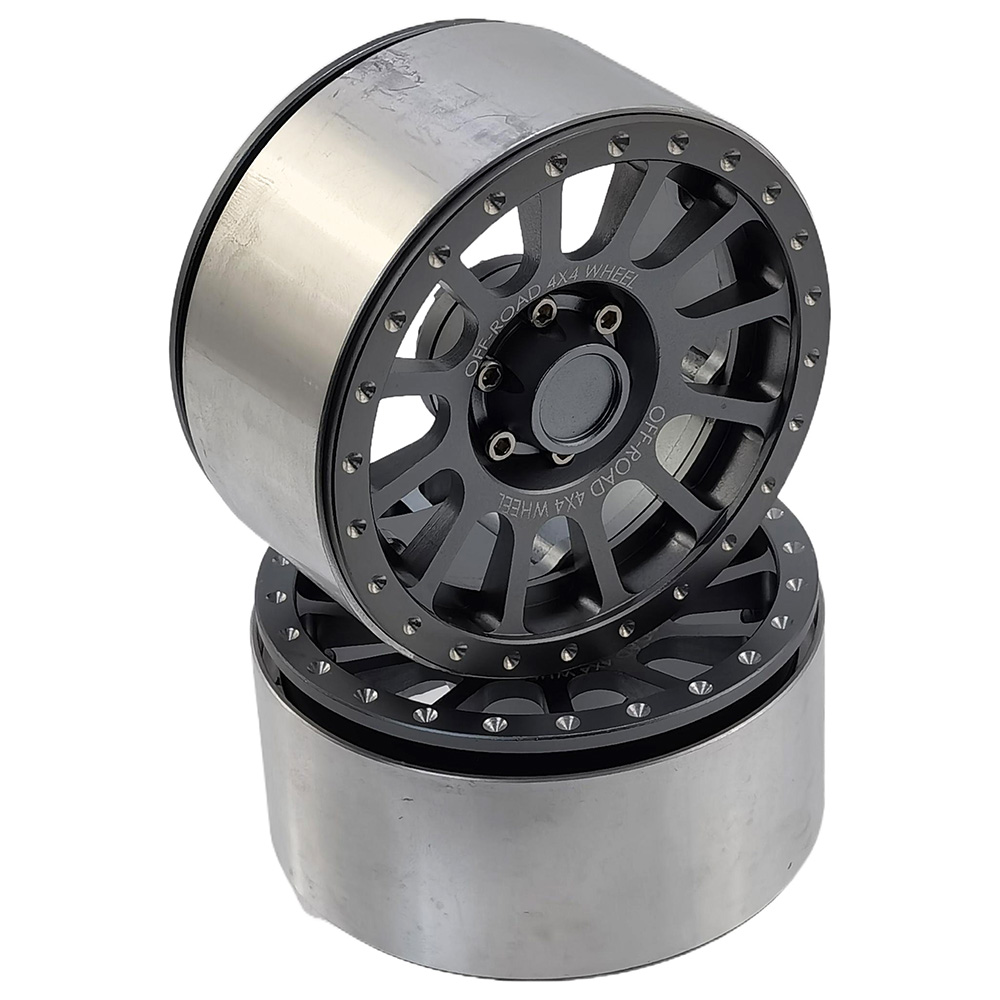 C Type 2.9" Aluminum Beadlock Crawler Wheels for Axial SCX6 1/6 Crawler: Black 2pcs/set