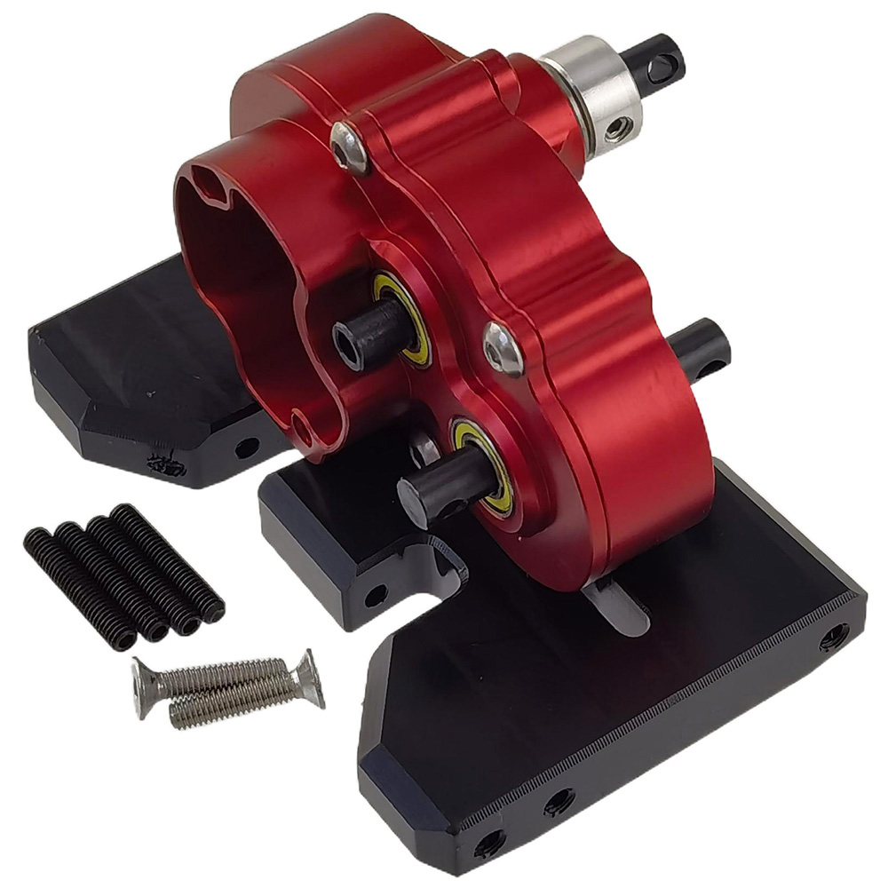 Aluminum Complete Assembled Dual Transmission Overdrive Gearbox / Installable 2 Motors for LCG Cheater Rigs SCX10 PRO Capra 1/10 RC Crawler: Red
