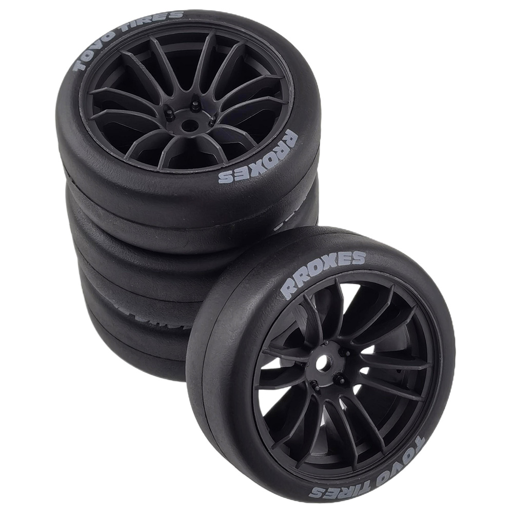 1/10 RC F1 Front and Rear Tires and Wheels 14mm Hex RC Drift Racing Hot Melt Tyres for 1/10 RC Formula One F1 Car Tamiya F104 PROII 58652 TRF104 42389 PANCAR KIT Teampowers TP 4PCS