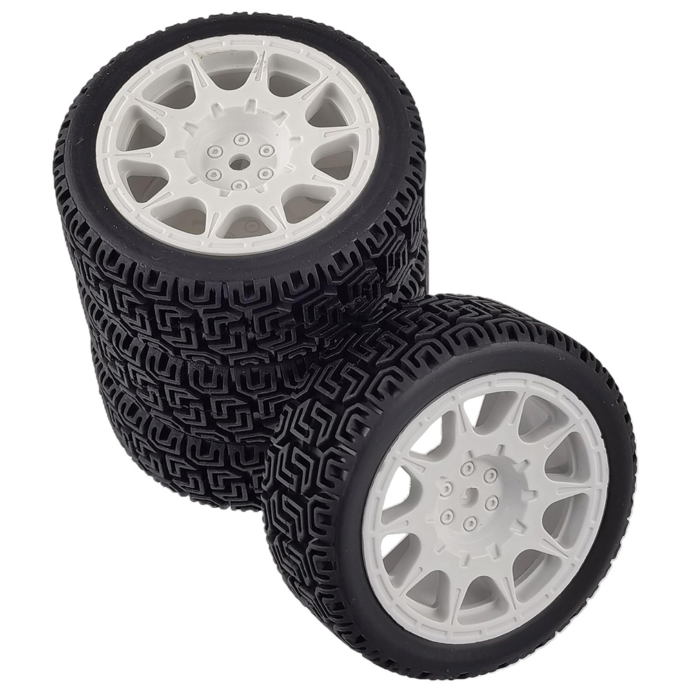 A Type 1/10 RC Rally Wheels Tires Car Rubber Tires for Tamiya TT-01 TT-02 TT01E RC Car: White