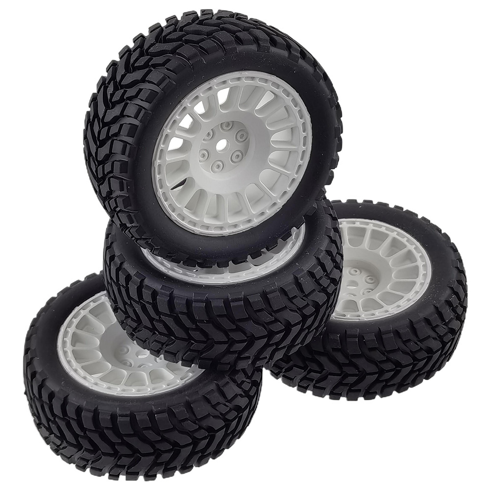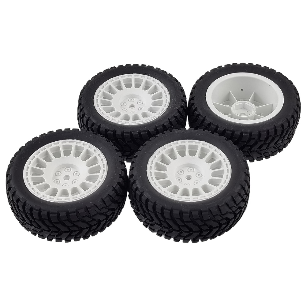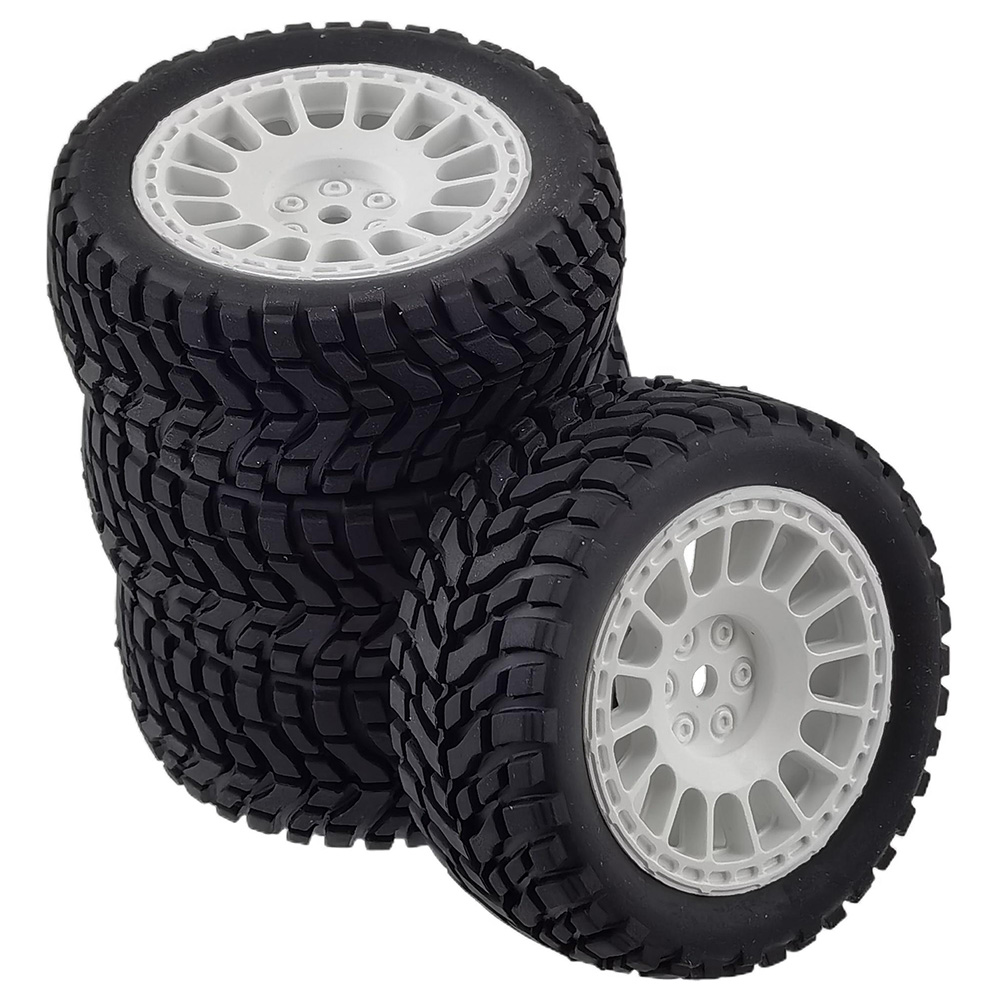 4-Pieces 75mm Rubber Tyres Tires with Foam Inserts and Plastic Wheel Rims, 12mm Hex for RC Drift Touring Car 1/10 1/12 1/14 1/16 Rally On-Road Car: White