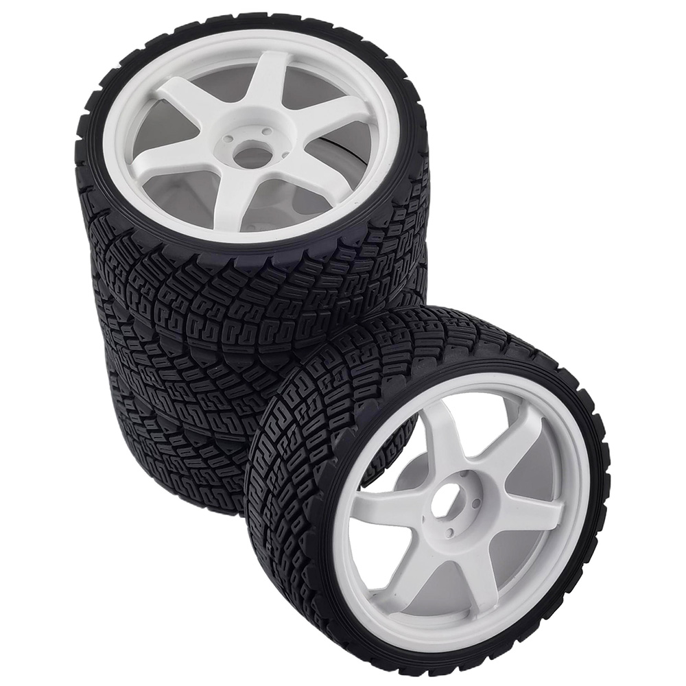 B Type 1/8 RC Rally Car Tires On Road Tyres 17mm Hex Plastic Wheels Rims Compatible with 1/7 1/8 Scale Racing Car KM WRC C3 ARRMA Felony Infraction Limitless RC On-Road Car (White) 126x66.5mm