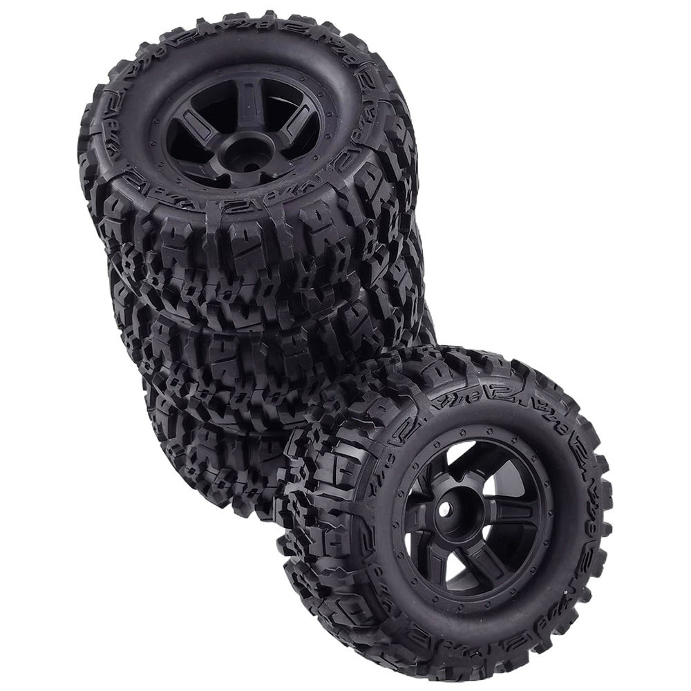 Rubber Tire & Rim Set For 1/16 RC TRAXXAS MINI E-REVO SUMMIT MONSTER: Black 12mm Hex Hub 90x41mm