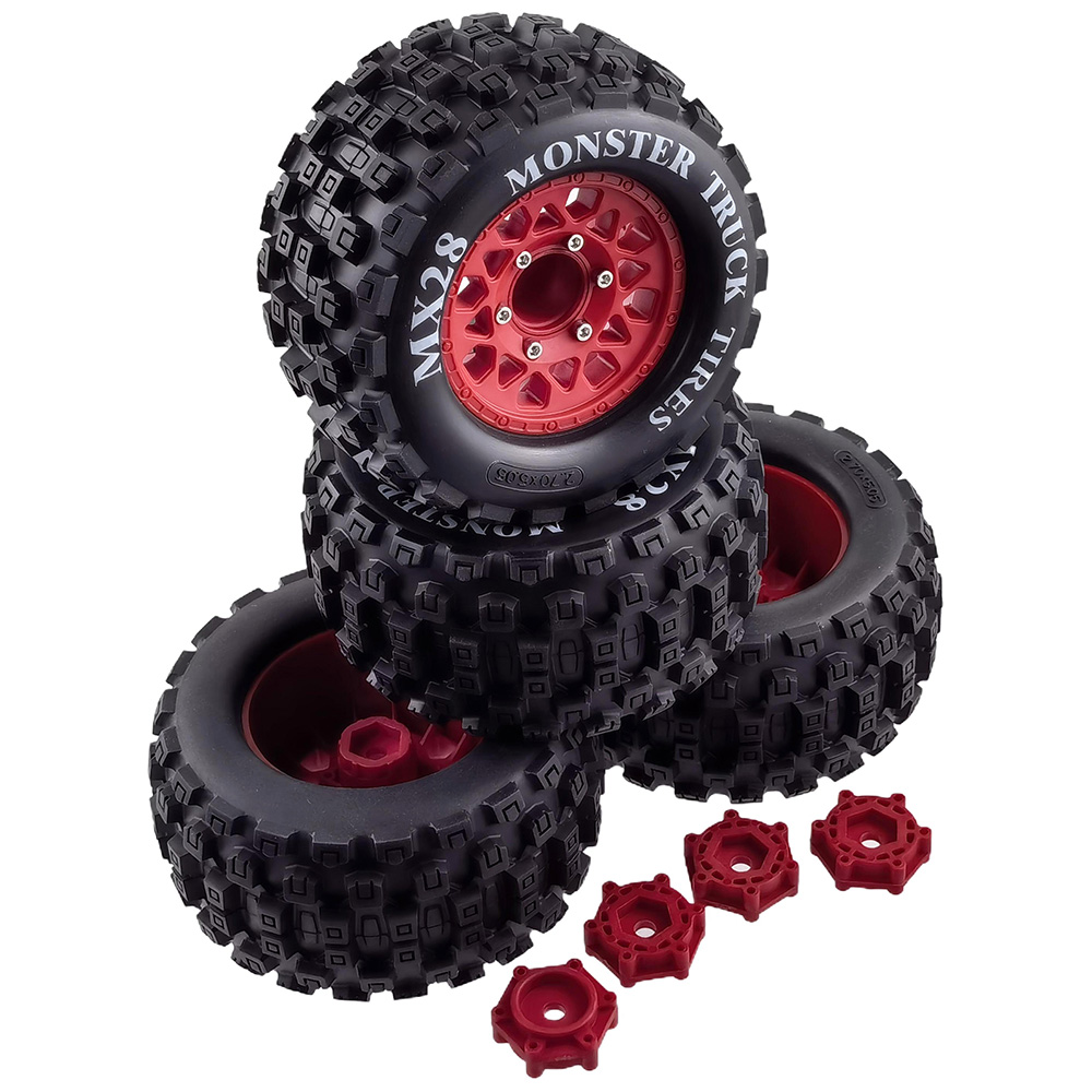 Badlands MX38 3.8" All Terrain Tires Mounted on Raid: Red 175.5x94mm 17mm Hex Hub