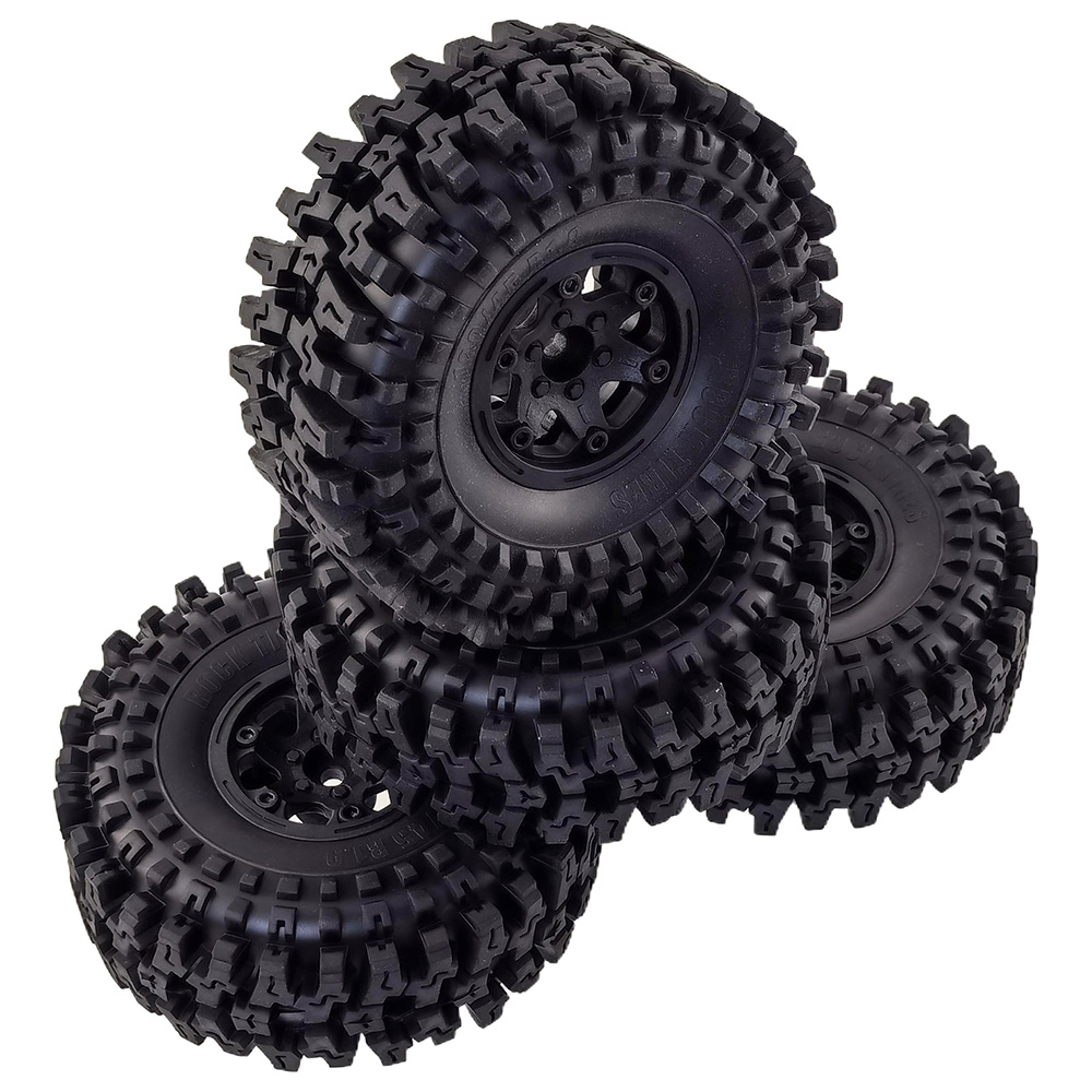 1.9" RC Crawler Tires 118x45mm w/ Plastic Rim: Black 4pcs/set, Hex12mmHub