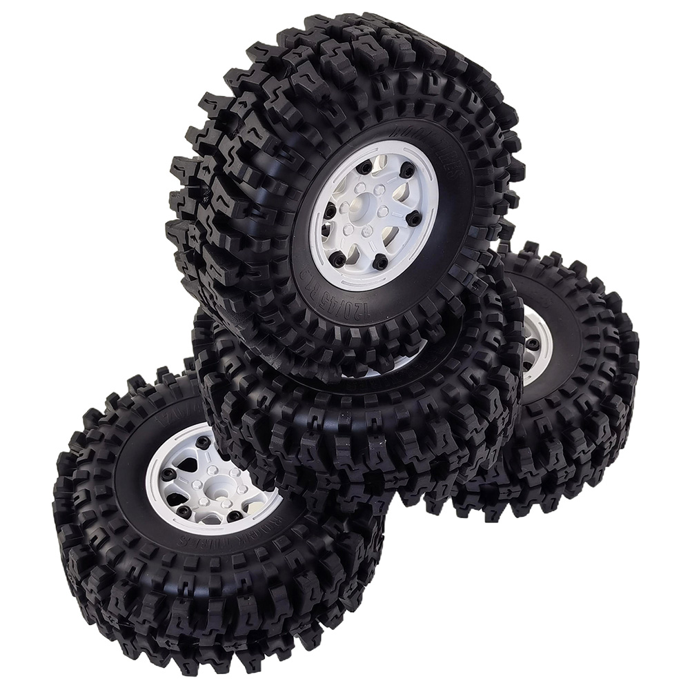 1.9" RC Crawler Tires 118x45mm w/ Plastic Rim: White 4pcs/set, Hex12mmHub
