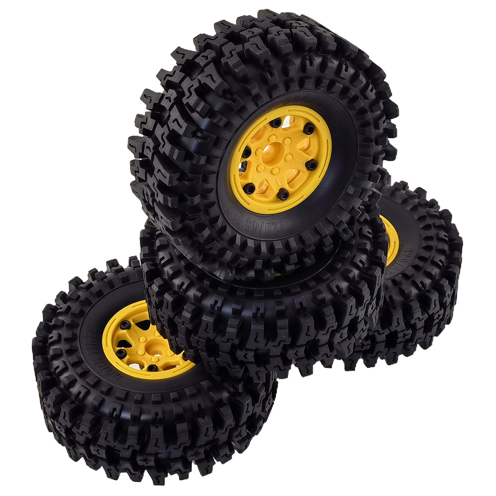 1.9" RC Crawler Tires118x45mm w/ Plastic Rim: Yellow 4pcs/set, Hex12mmHub