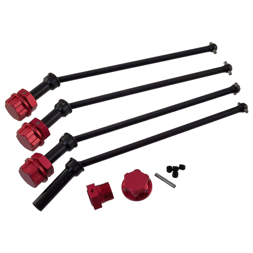 Haredened Steel Front / Rear CVD Drive Shafts with Aluminium Wheel Hex Adapter and Lock Nuts for Arrma 1/5 Kraton 8S Outcast: Black/Red