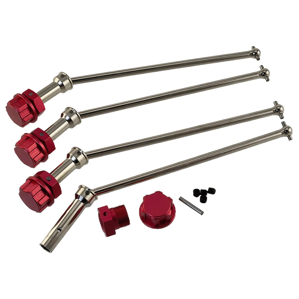 Haredened Steel Front / Rear CVD Drive Shafts with Aluminium Wheel Hex Adapter and Lock Nuts for Arrma 1/5 Kraton 8S Outcast: Silver/Red