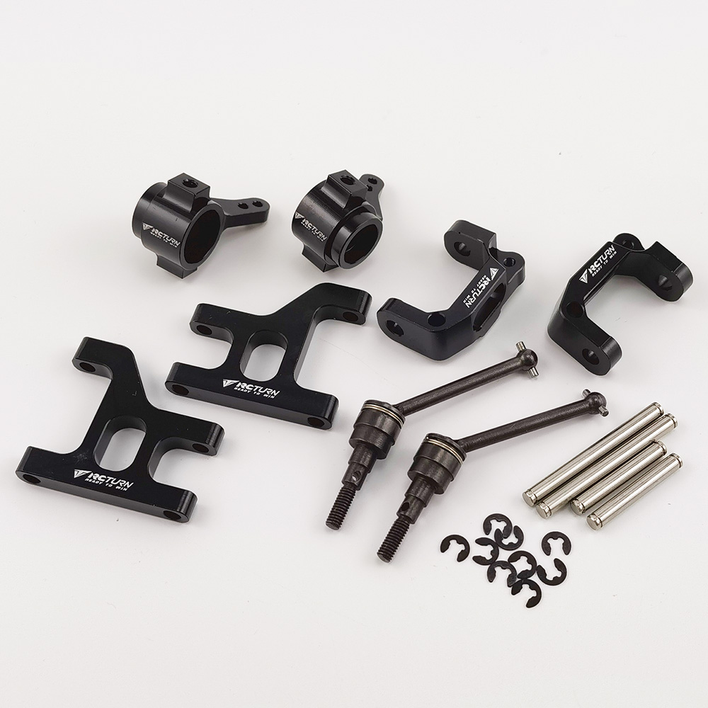 Alloy Steering Knuckle & Front Lower Suspension Arm & C Hub & CVD for Tamiya CC-01 / CC01 1/10 RC Crawler: Black